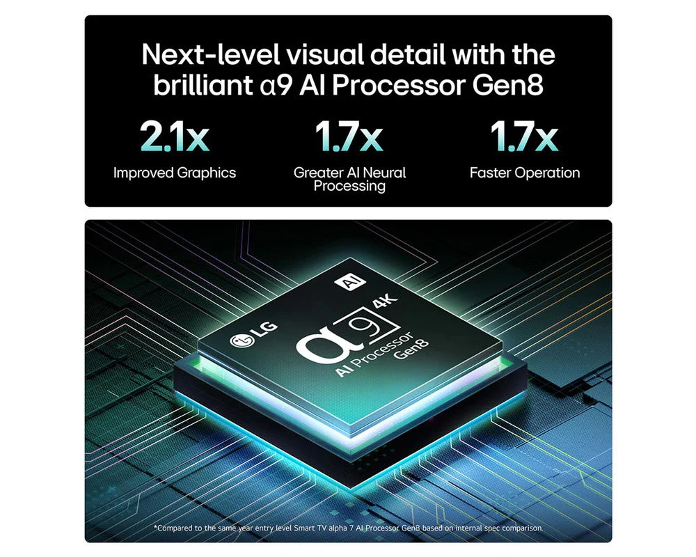α9 AI Processor Gen8 4K- the processor's AI engine analyzes and upscales every frame in detail. By recognizing faces, it delivers not only 4K visual quality, but enhanced facial expressions and depth.