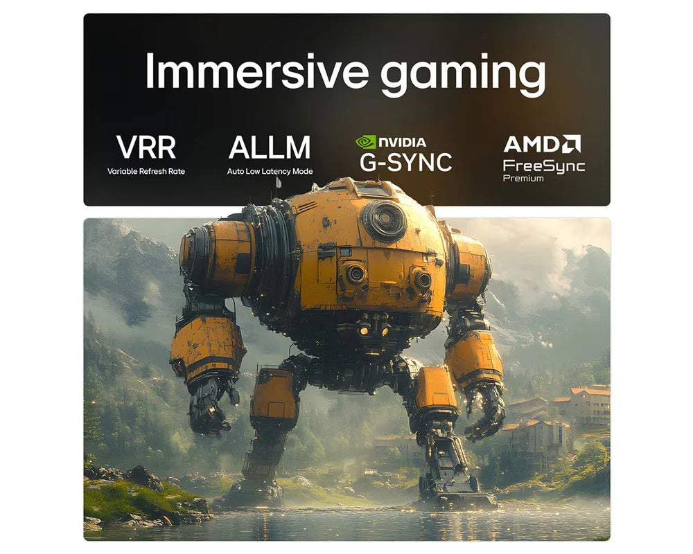 - Dolby Vision for Gaming (4K 120Hz) - Nvidia G-Sync compatible - AMD FreeSync compatible - Game Optimiser - HDR game mode - VRR (Up to 144Hz) - ALLM - HGiG mode