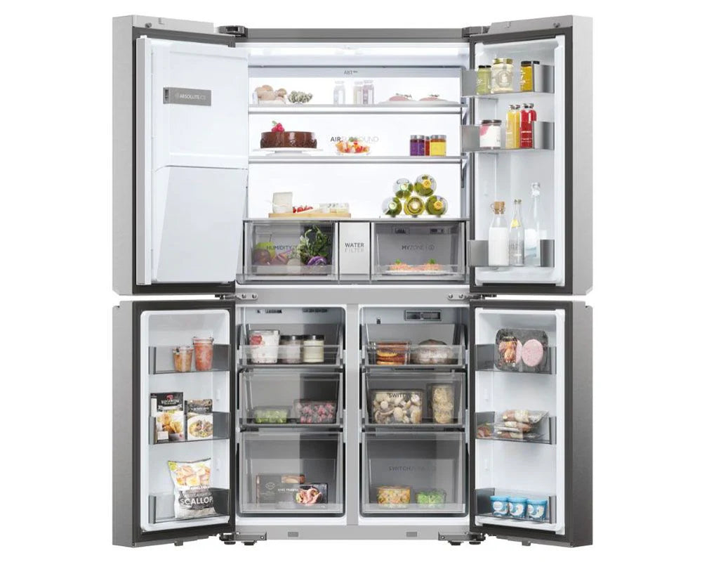 Small Details That Matter- Haier designs its refrigerator with a keen eye on every details both in exterior and interior. An anti-fingerprint finishing, the blue led lights on the fridge door, the light that reflects the Absolute Ice name on water&ice dispenser and the integrated display have been designed to enrich your kitchen. The handles are seamless lasered being elegant and perfectly cleanable. The inner refrigerator is as good as the exterior: cantilevered shelves allow to more practically change shelves position as it is not required to remove it completely from the fridge and the new wine rack gives more flexibility, with the possibility to store up to 6 bottles.