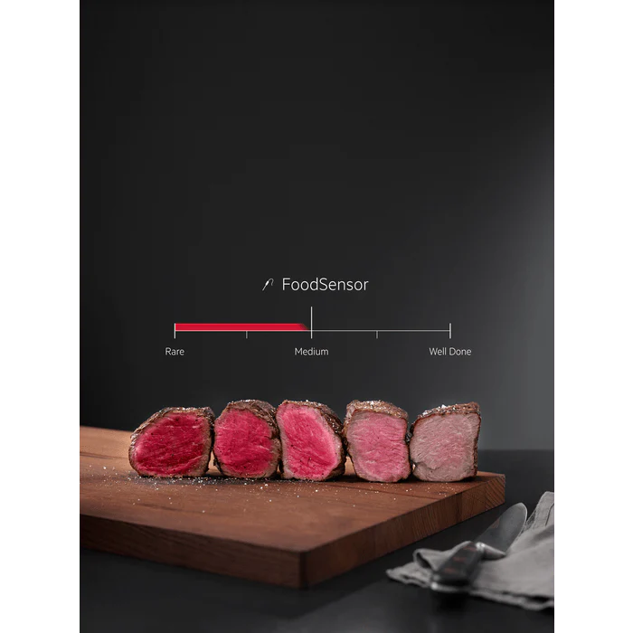 Food sensor - precisely measuring the core temperature of your food, the Food Sensor lets you know when your rare, medium or well done meat is ready. As well as cooking fish and vegetables just the way you like them.