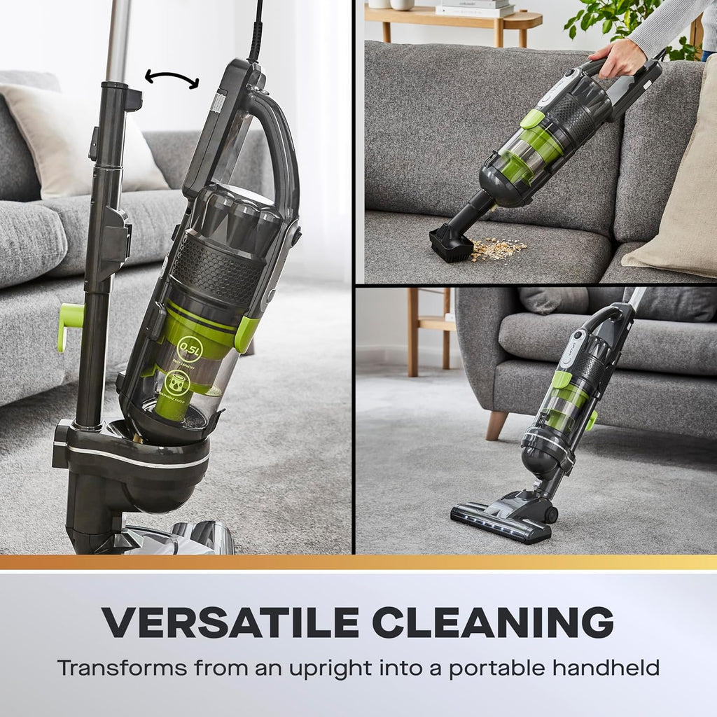 Versatile and convenient -2-in-1 upright and handheld capabilities, a long 7m cable, a 0.5L dust tank, a washable HEPA filter, and a bagless design, this vacuum offers versatility, ample reach, easy maintenance, and cost savings in one package