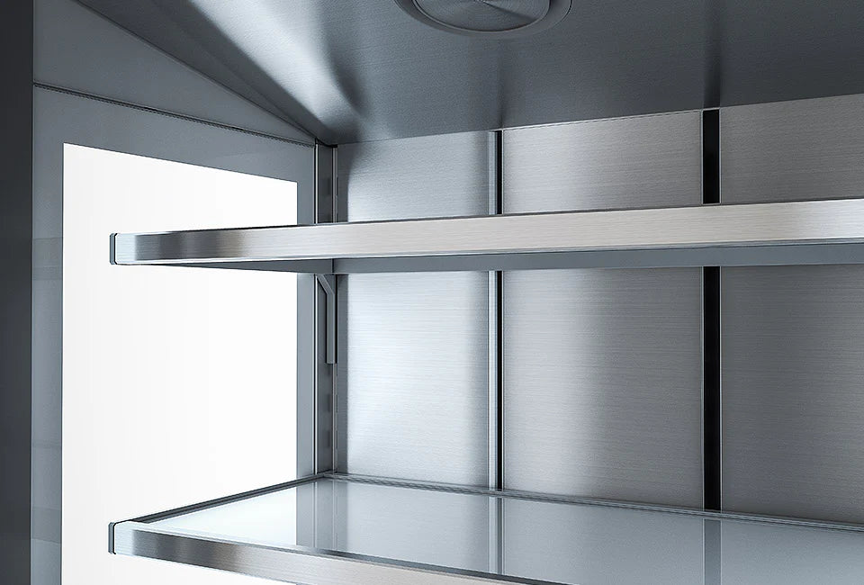 InfinityLight - seamlessly integrated LED side-wall lighting casts a beautiful and even glow that can be adjusted according to taste, including a soft brightening effect upon opening the doors, and a pleasing night dimming feature. InfinityLight doesn’t just add drama and flair, it also emits less heat, preserving food quality.